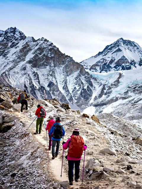 Trekkers are also taught about the dangers of weather-related incidents like snowstorms and avalanches, and given gear to guard against extreme temperatures. Treking poles, appropriate footwear, and layering clothes are all a must to accompany the varying terrain and cold weather. The trekkers’ hydration and fuel intake are also kept up by sherpas, who help them sustain their energy during the trek.
